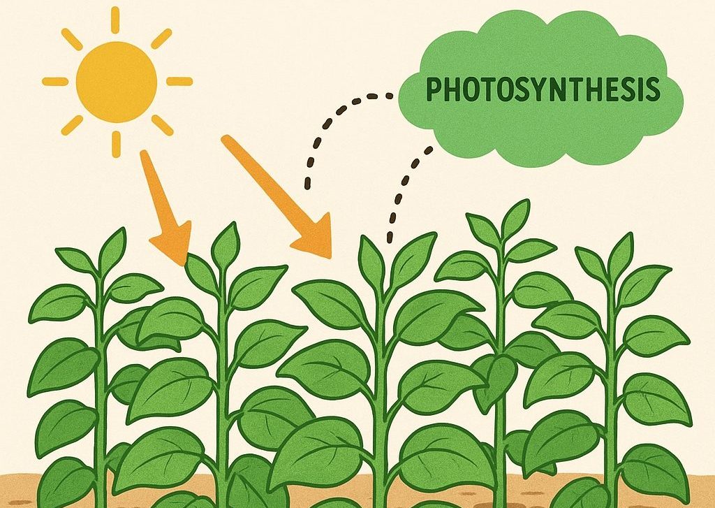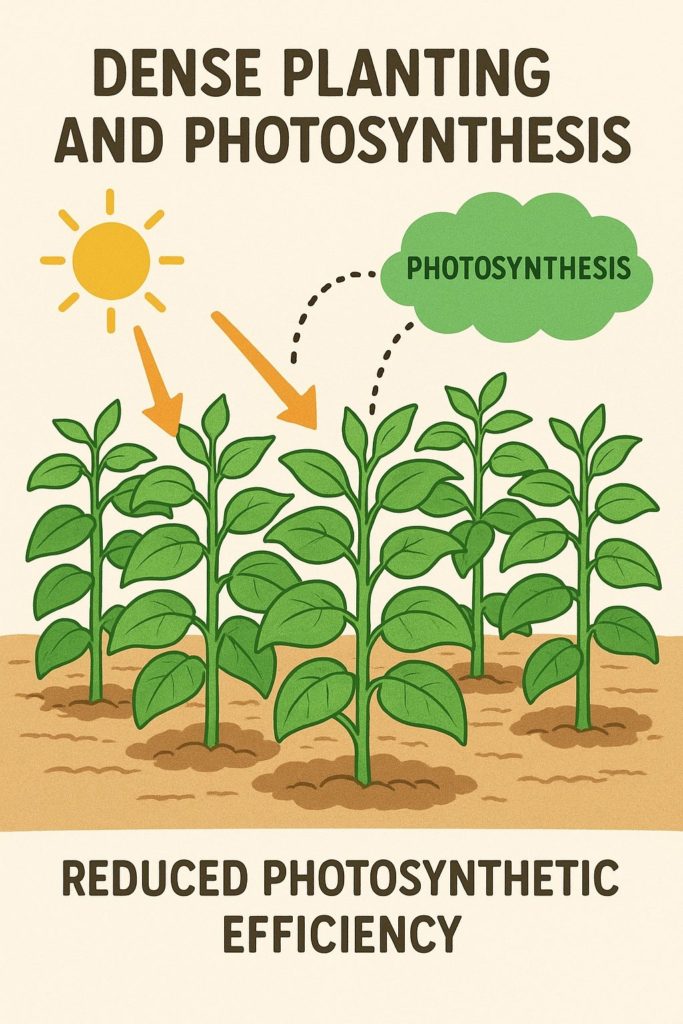 密植は「一見効率的」ですが、葉一枚あたりの光合成効率はむしろ下がることが多いです。